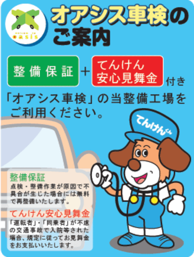 点検結果により必要な整備、交換部品等は別途料金となります。